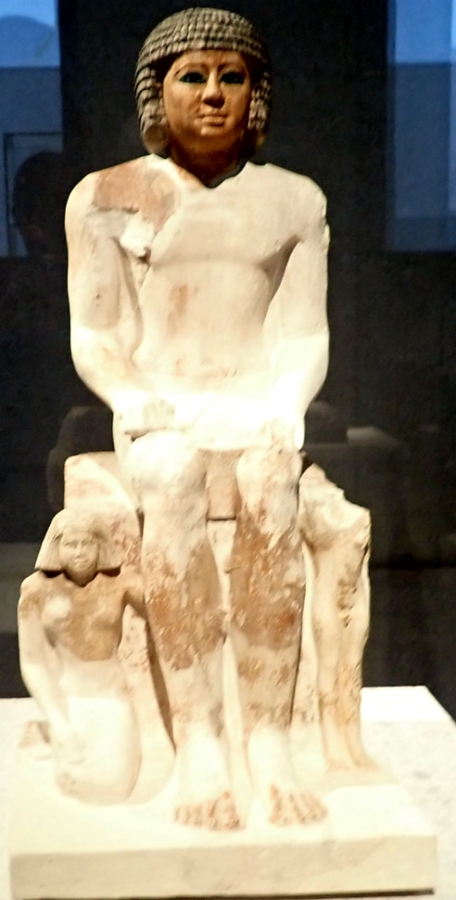 Familiegroep, ogen van de man met inlegsel (Sakkara, kalksteen, beschilderd, inlegsel uit kopen en steen)