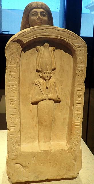 Knielend figuur van Setau, onderkoning van Kush met stèle (Abydos, kalksteen)
